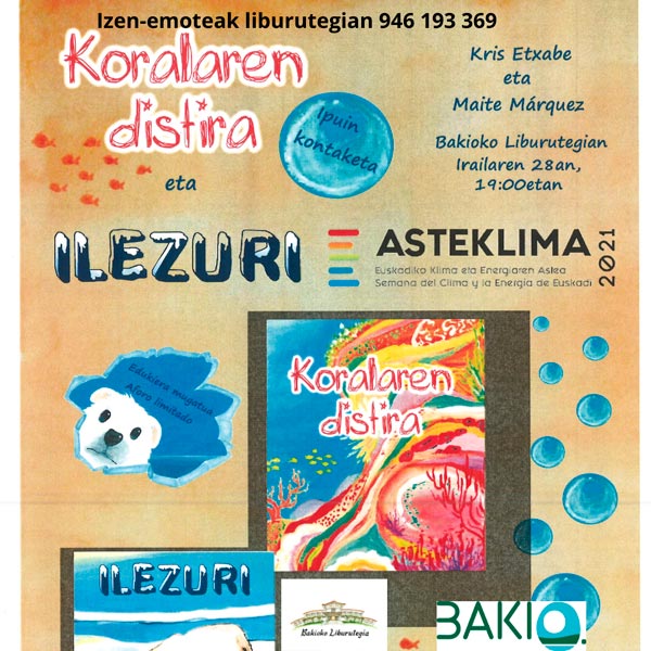 Relato en euskera de dos cuentos sobre medio ambiente mientras el ilustrador realiza una performance pintando un gigante dibujo sobre los cuentos. Antes de contar los cuentos, se explicará a los niños y niñas los problemas que genera el cambio climático, la contaminación y los plásticos en los mares, así como las posibles medidas para solucionarlos.